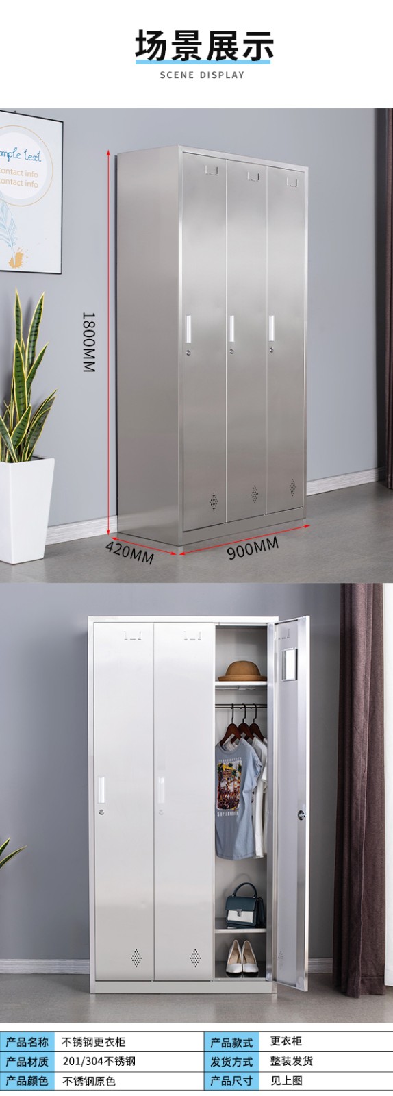 不銹鋼更 衣柜3門