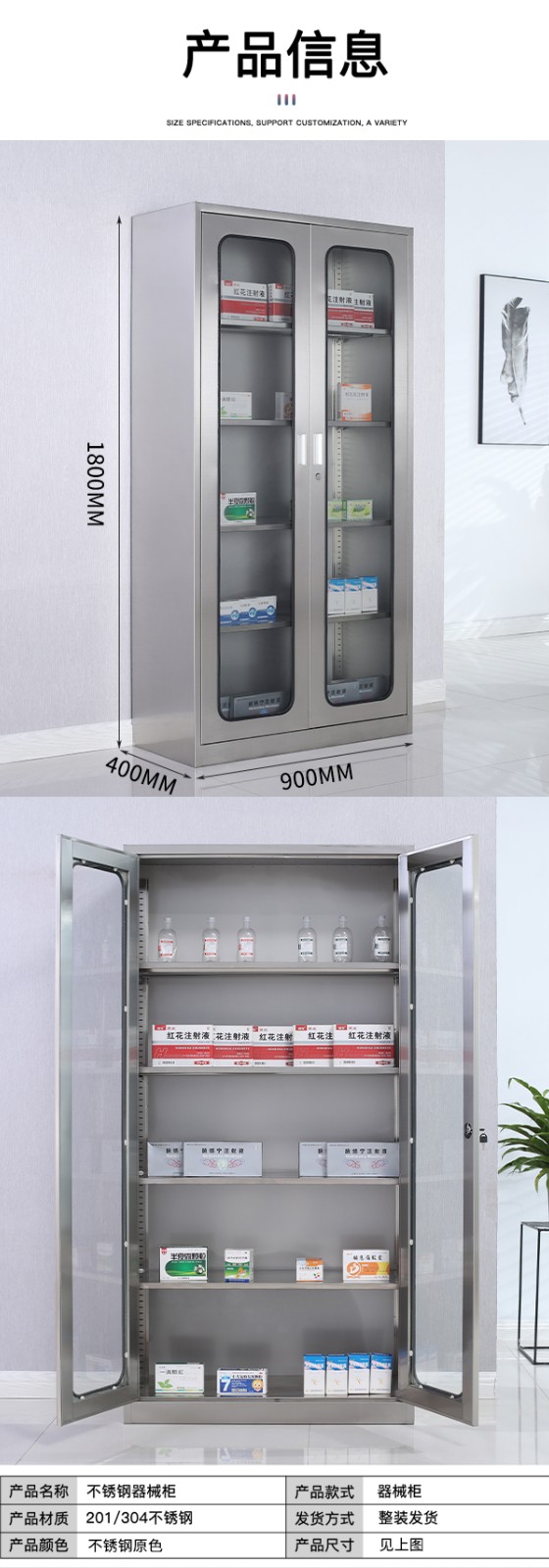 不銹鋼西藥柜通玻